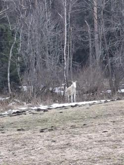W gęstwinie pojawia się zjawa. Spośród leśnych brązów i zieleni nagle wyłania się postać niemal nierealna – śnieżnobiała sylwetka, która zdaje się pochodzić z zapomnianych legend.